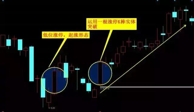 其实这也是非常常见的一种K线形态。拉出涨停后。再经过几日的持续下跌。然后再用一涨停K棒表明态度。从此股价如同:两个黄鹂鸣翠柳。一行白鹭上青天。