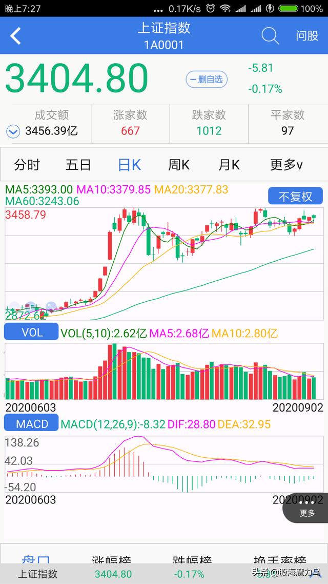 9月2日。证券板块收绿色十字星。代表变盘在即。明天怎么走?