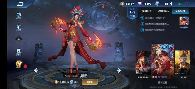 b.霸王别姬项羽+虞姬:国风古韵。京腔风华。全新技能特效力拔山兮气盖世技能特效。花舞红绫虞美人特效。