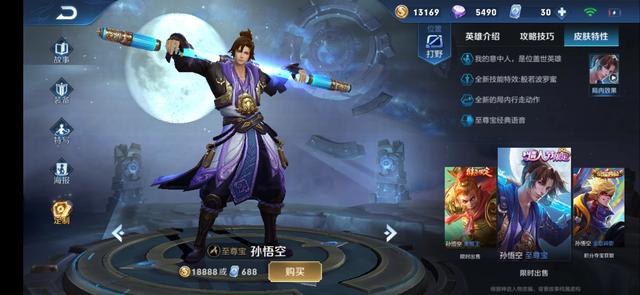 2.至尊宝。情人节限定皮肤!我的意中人。是位盖世英雄。全新的技能特效\"般若波罗蜜\"。全新的行走动作。至尊宝金典语音。
