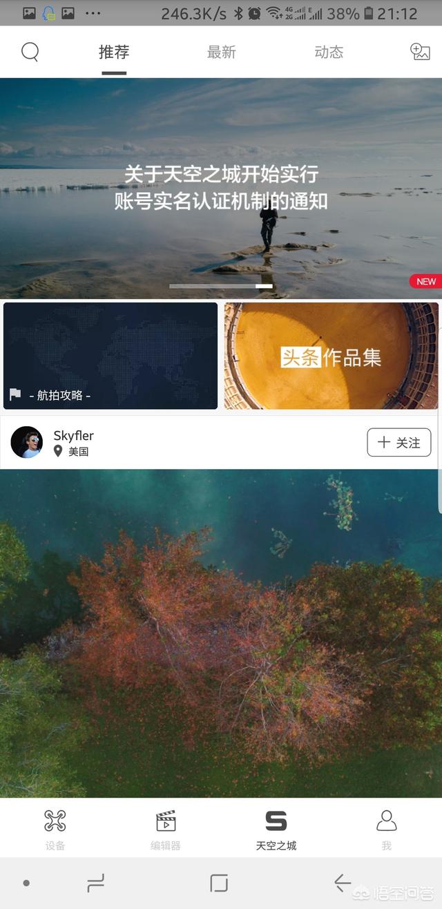 打开DJI GO软件之后在最下方你会看到有个天空之城。这里面都是一些大神拍摄的航拍视频。图片。质量还算不错。