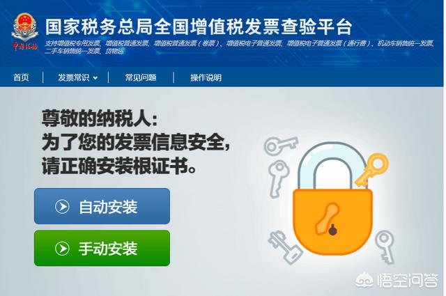 你可以选择自动安装和手动安装。一般都是自动安装。如果自动安装根证书不成功。或者自动安装后提交发票查验请求时提示“为了您的安全。已阻止此网站显示有安全证书错误的内容”。或者无法正常获取验证码时。就需要使用手动安装。点击手动安装后会有详细安装教程。