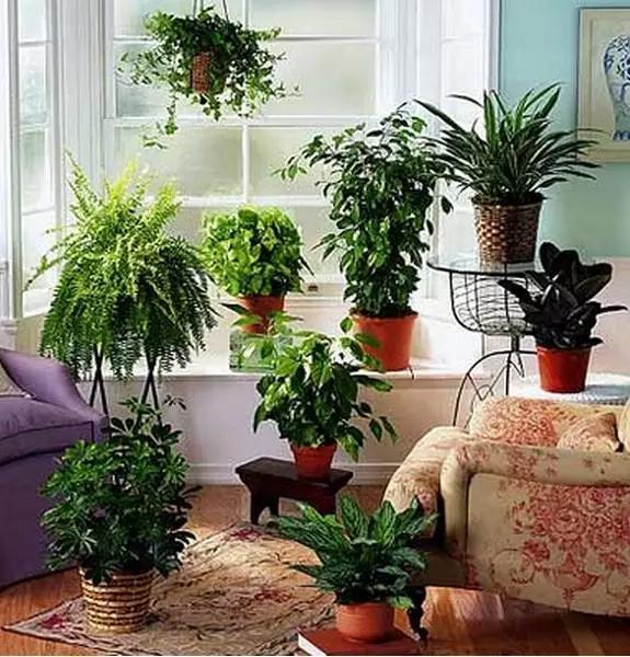 ◆中小型观叶植物如南洋森。粤万年青、凤梨类、蕨类、椒草类等。置放在几架、台座或家俱上。则起到较好的美化作用。