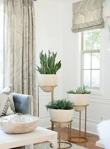 大型的绿植一般都会选择发财树。绿萝。巴西木等。这些植物比较耐养。但是也有一些资深植物达人对个性的要求比较高。他们会养一些特别的植物。你可以参考下面的图例找到自己喜欢的风格: