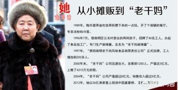 老干妈奇迹背后是苦难:当年孤儿寡母。为谋生被逼创业。她丈夫早逝。剩下孤儿寡母。生活没有来源。为了活下去。她——一个没有什么文化的女人承担起养家的重任。由于没有文化。她开始只能从卖苦力、摆地摊做起。慢慢积累。每天要扛着100多斤的担子去卖米豆腐。并且为此落下了严重后遗症。直至今日。仍膏药不断。但是。这个不屈的女人。愣是靠着惊人毅力扛下来。20-30多岁时她在辛苦卖苦力、摆地摊。挑着100斤的担子、走几十里去早市摆地摊。42岁她用捡来的半截砖搭了一个简易餐厅、47岁她开了食品店。49岁时她开了辣椒酱加工厂、50岁时她做了食品有限责任公司………从不幸草根做到45亿。