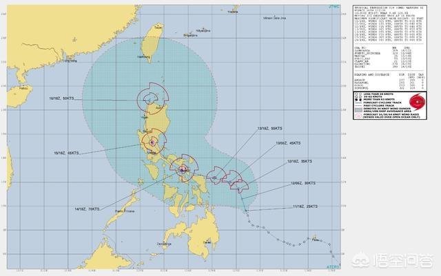 而最强暂时给予的70KT风速。而这个风速最强也就是强热带风暴或者12级左右的台风。所以整体上来说“准台风”黄蜂强度不会太大。从路径来看。该台风将会登陆菲律宾。然后反转北上。这也是JTWC给予的“准台风”黄蜂第1张路径走向图。