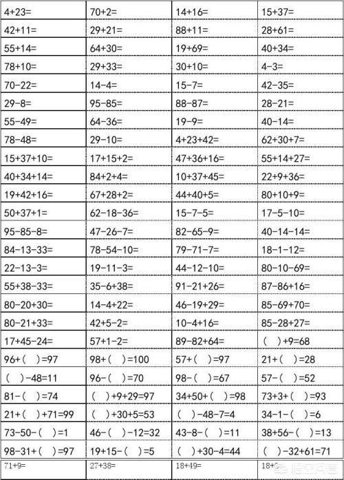 那么怎么才能使孩子能够把100以内加减混合运算能力提高。这个问题我只要问问家长。你孩子20以内的加减法学的咋样。能否达到看到题脱口而出的地步。我班里很多小孩子的计算能力非常好。他们很多20以内的计算题张口就说。
