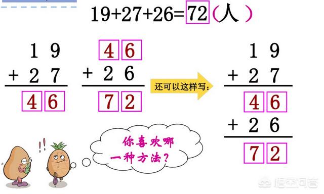 当涉及到3个数的加减时。有两种比较常用的竖式计算方法: