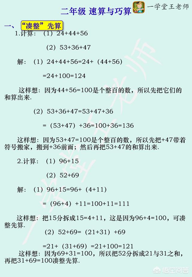 速算巧算技巧熟练竖式计算。运算顺序后。可以学习如凑整先算。带符号搬家。基准数法。等差数列等相关速算技巧了。附二年级速算技巧。