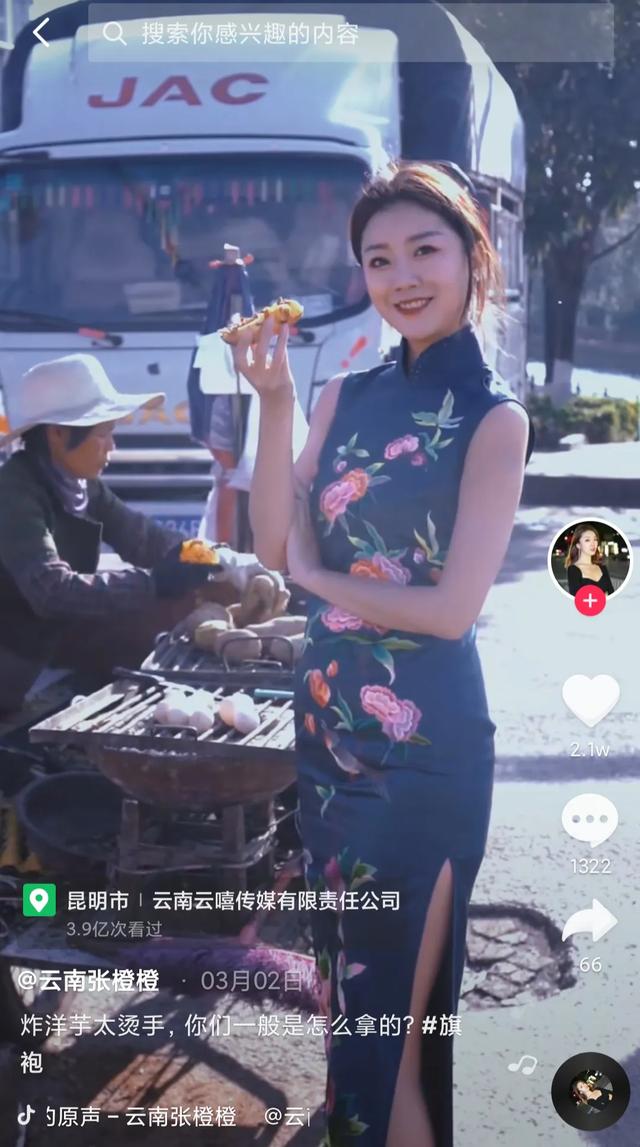 于是。她想换一个领域创作短视频。由原来的美食探店改为“云南美景推荐”。创作方向变了。名称自然要变。于是。火辣热情的阿姨“张孃孃”就变成了阳光活力的少女“张橙橙”。