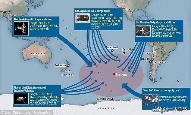 由于尼莫点人迹罕见。海域面积宽广。尼莫点就成了退役航天器坠落点的首选。