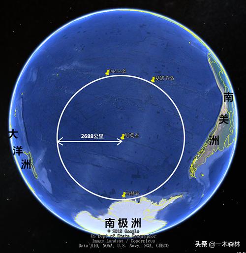 如果以这个距离为半径。以尼莫点为圆心。画一个圆的话。这一片圆形的区域面积。等同于整个北美洲的面积。这么一大片的区域。没有任何陆地。视线所及之处。全是汪洋大海。