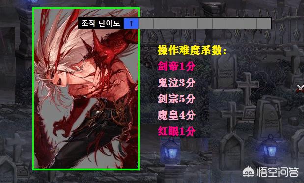 剑帝操作难度为1。鬼泣操作难度为3。剑宗难度为5。魔皇难度为4。红眼操作难度为1!