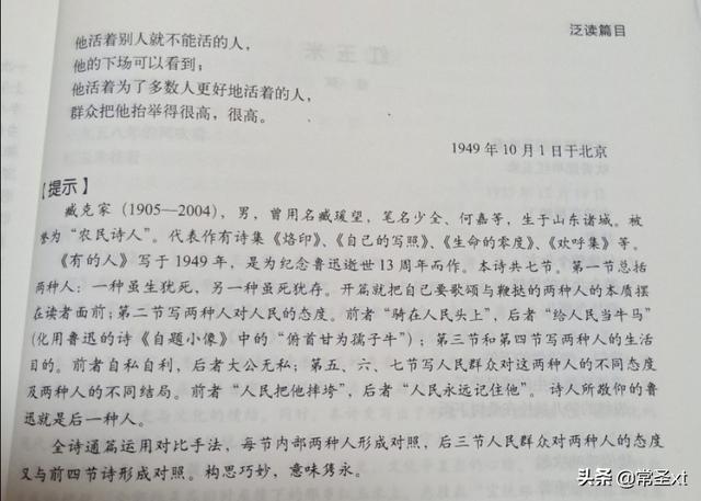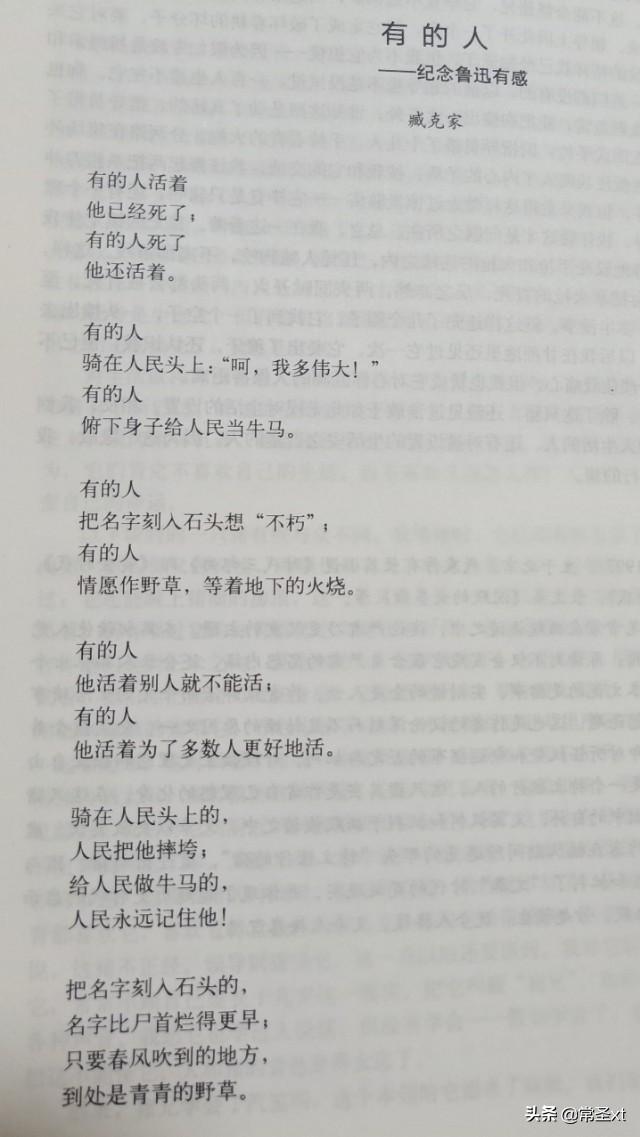 我还喜欢这首臧克家的《有的人》。特别是第一段。估计很多人都熟悉。