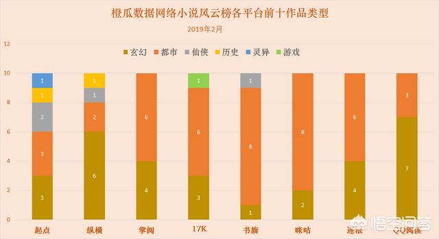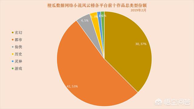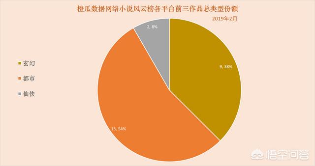 从统计表格。我们可以看到。都市小说在在榜单上的份额超过一半。在各平台前十总共80部作品中。有42部为都市小说。占比达到53%。这充分说明了都市小说在整个网络文学市场的地位。这背后反应的是读者的兴趣选择。也是市场发展的现状。而声势最高的玄幻小说则只有30部。占比为37%。在整体数量上玄幻作品并不如都市作品。这这一点来看。都市读者比玄幻读者群体更为普遍。或者说是付费意愿更高。