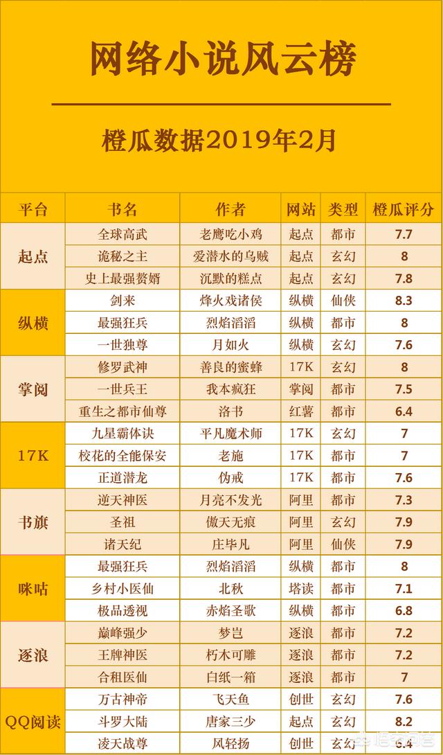 随着时间的发展。网络小说也如同大浪淘沙一般内容日渐丰富质量日渐优质。今天就给大家介绍下起点中文网、纵横中文网、掌阅、17K小说网、书旗小说、咪咕阅读、逐浪网、QQ阅读。这八个平台的排行榜前三位的作品。各平台排名不分先后。