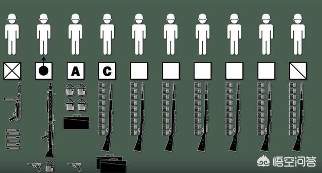 还是用资料说话:一个步兵排拥有1门1936式50毫米口径迫击炮(全连3门);每个排有4个班。每个步兵班则有一挺MG34
