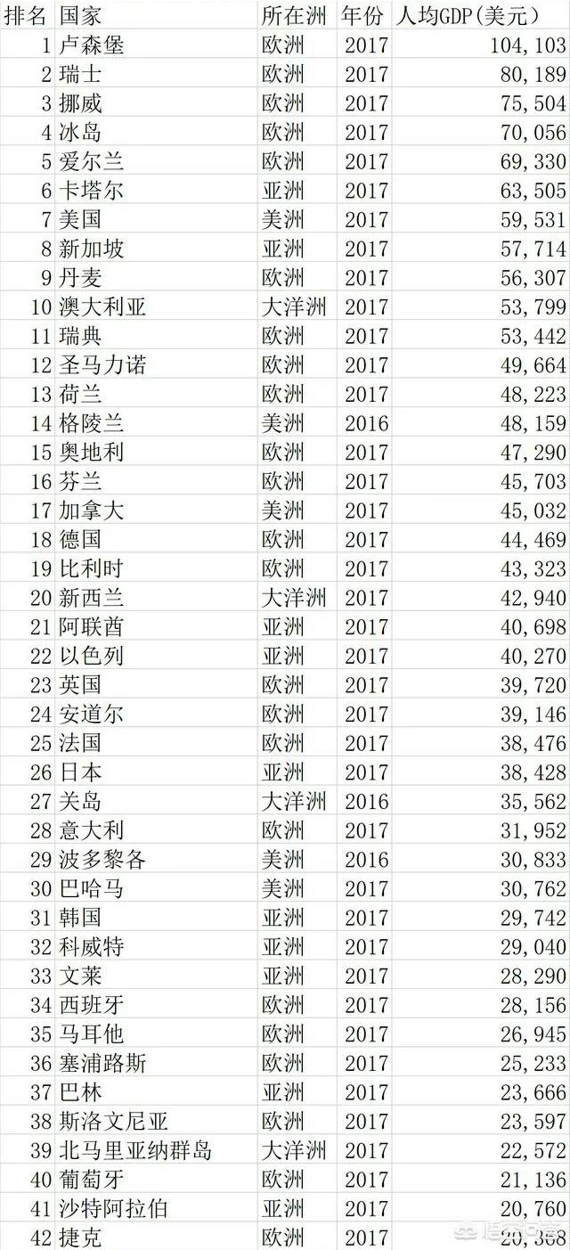 小编并不这么认为。像人均GDP排名前6的卢森堡、瑞士、挪威、冰岛、爱尔兰以及卡塔尔。它们都是小国家。人口只有几百万。甚至几十万。不可否认它们的人均GDP很高。某些产业很发达。但这只是一小部分。很多产业它们规模很小甚至是没有的。这样能称得上是世界最发达的国家吗?所以小编认为。世界上最发达的国家。首先体量要大。人口至少在千万以上;其次。各方面都比较发达。而不是某一两个方面突出。其实基本上锁定在G7集团。即西方最发达的七个工业化国家——美国、日本、德国、英国、法国、意大利以及加拿大。