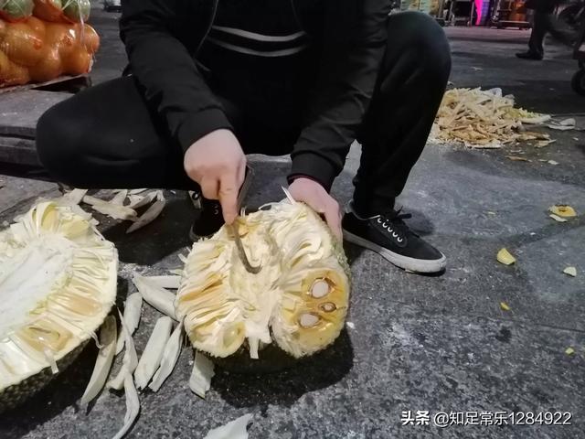 当然。有的人为了图方便简单。直接就用刀劈开了事;但是这种粗暴简单的方法。既会把肉切坏。也容易把肉弄脏。还容易把手和地弄脏。因为菠萝蜜在切开的时候都会分秘出一种白色粘手的桨汁。那么。除此之外。谁还有更好的剥开菠萝蜜的办法呢?我到有一个非常实用的好方法分享。因为我是卖水果的。我经常要接触到菠萝蜜的批发商。我这个方法也是从他们哪里学来的。