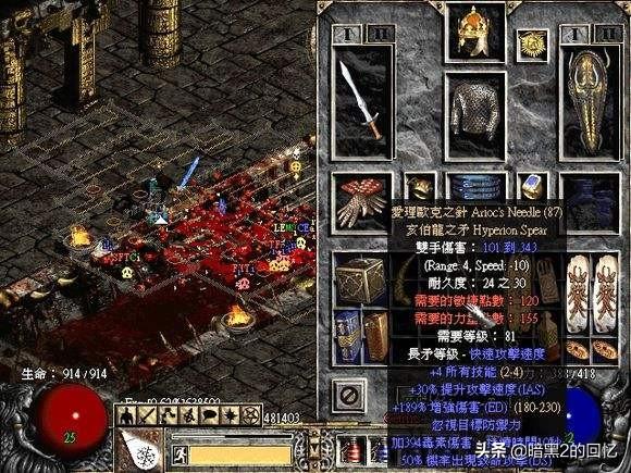 任务好做。装备难求!暗黑2共有7大角色。野蛮人、圣骑士、死灵、法师、亚马逊、刺客、德鲁伊。而每个角色按照技能加点的不同又衍生出很多职业练法。如法师可以有纯冰、电法、火法、冰火双修等等。结果是装备搭配各不相同。在主流搭配基础上可以灵活变通而不失特色。