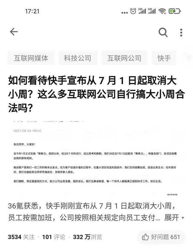 本文标题:快手宣布取消大小周,互联网的“996”的风散去了吗?