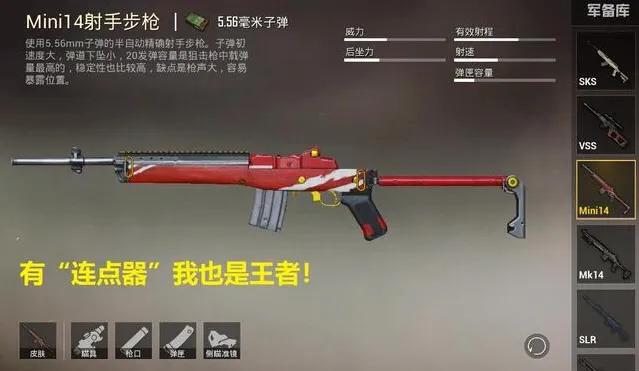 M16曾一度崛起。因为啥。就因为连点器!单点状态下。只要你的手速够快。就可以一秒40发子弹。连点器就做到了。并且不止M16。像Mini14。Mk14都可以做到比全自动还快。