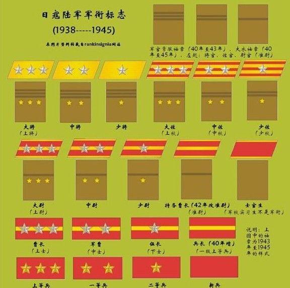 所以就现在解放军的军衔来看。“上将”相当于二战时日军的“大将”。所以说不是日军没有上将军衔。而是日军没有用“上”这个汉字。用的是“大”字。