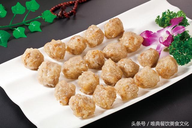 2.此菜光亮如水晶。配冬菇、火腿和菜心。丸子漂浮汤中。色泽艳丽。滑润软嫩。富有弹性。