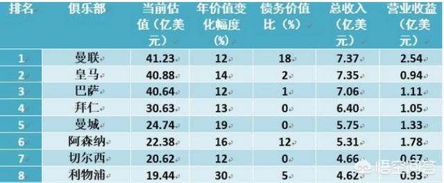 2018年曼联以价值41.23亿美元排名全球足球俱乐部榜榜首。利物浦则只有19.44亿美元排名第八。曼联依然是无可争议的英伦第一豪门。