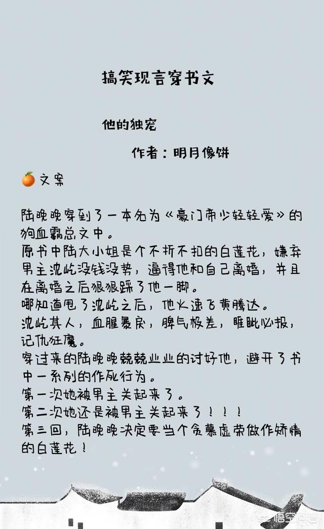 4.月下蝶影的古言和雾矢翊的宠妻系列都挺逗的。女主属于扮猪吃老虎那个类型。文字很轻松