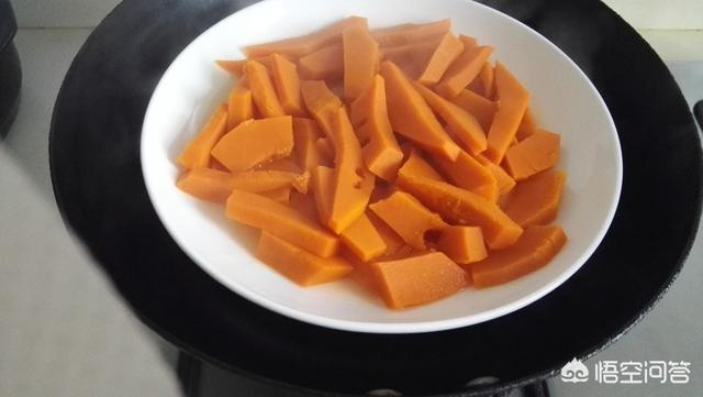 南瓜切片。上锅蒸熟
