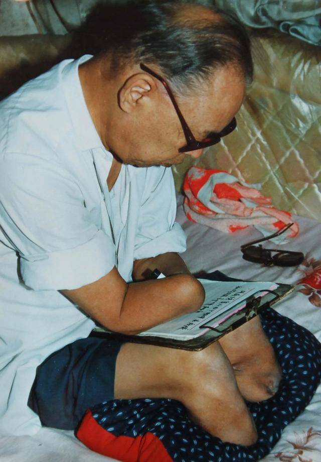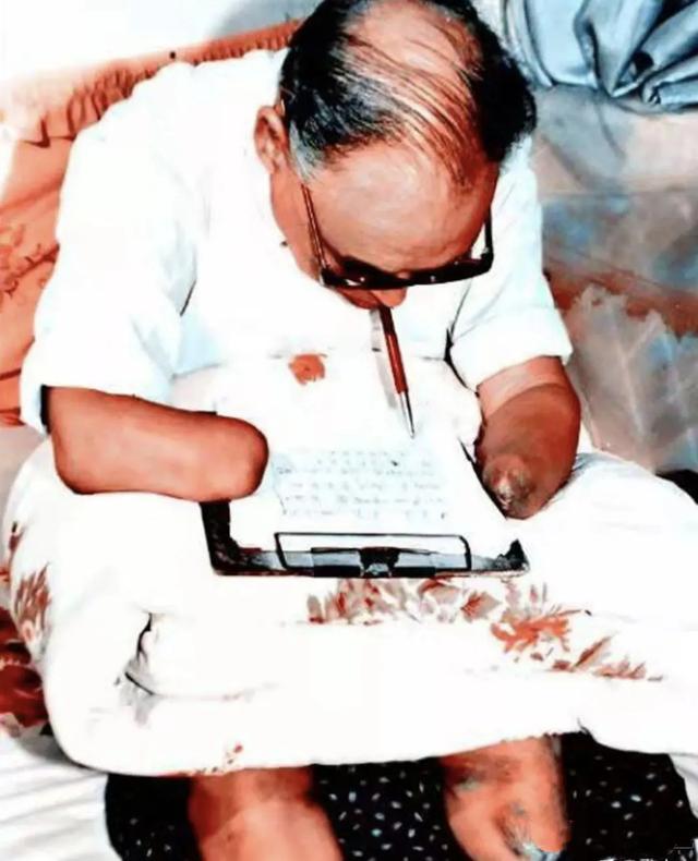 可笔杆子对于失去双手的朱彦夫来说更是一道难关。他用被子垫着双臂。然后再放上纸夹。用嘴叼着笔写字。半天时间才写出一个字。而且还有一个问题。就是嘴叼着笔时间长了。口水就会顺着笔滴到信纸上。不仅弄湿了纸。还会模糊了字迹。