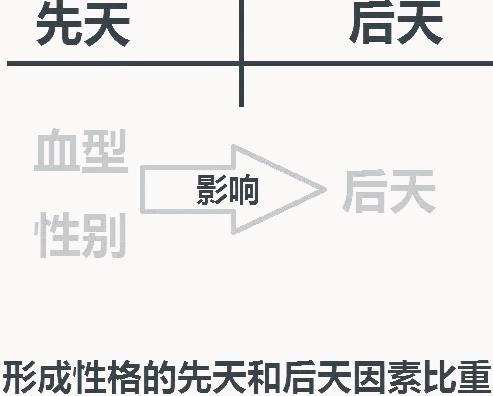 三是性格是先天和后天因素共同作用的结果。内因主要是父母的遗传因素。各种决定染色体性状的基因都可能影响后代的性格。血型只是其中的一个方面。外因范围就多了。比如成长过程中的学习教育以及家庭、社交、自然等环境状况甚至饮食等。都可能造成人的性格差异。这也是为什么好多双胞胎性格不尽相同甚至完全相反的原因。