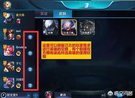 如果双方都有彼此英雄的话。英雄右边会出现一个两个箭头的图标。证明你们可以进行互换。