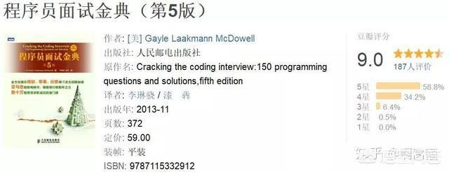 本书是适合硅谷技术面试的一本面试指南。因为题目分类清晰。风格比较靠谱。所以广受推崇。(毕竟这是美国的调查。所以是硅谷的面试。)