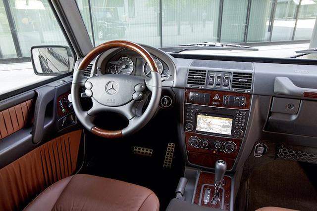 车身看起来很大。但1998年出现的车型。全长4490mm(3门4040mm)。全宽1810mm。可以说是目前SUV的标配尺寸。当然。作为高性能版本的AMG车型也加入了G级。不过。即使配备了高输出的动力单元。它与这个底盘的结合也是有限度的。尤其是90年代的AMG车型。还有很多方面达不到大家的期望。