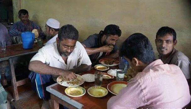 孟加拉吃饭的时候。不能把自己盘子里的东西再放到别人盘子里。就连夫妻之间都不允许。
