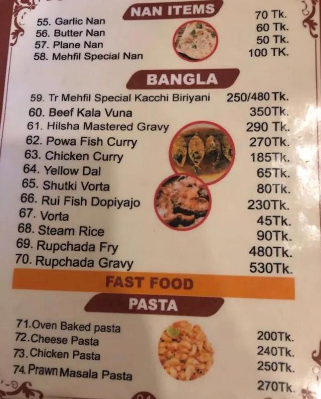 孟加拉人在吃有骨头的肉时不能把骨头连肉一起放嘴里。要用手把肉从骨头上剔除下来再吃。只用单手就要把骨头和肉分开也是一门技术活。不是当地人很难适应。