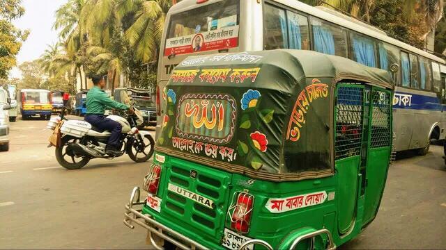 2.孟加拉国有特色的“人力三轮车”。在达卡的大街上到处都是人力三轮车。每公里1.5元。5公里9元钱。价格实惠。坐起来很方便。重要的是还不堵车;