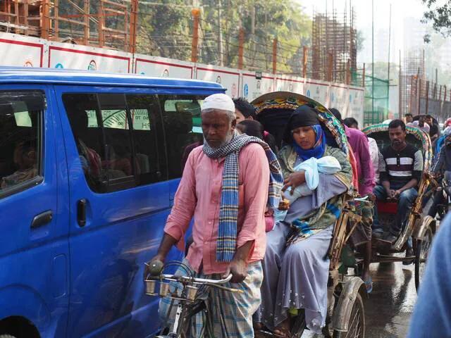 在孟加拉很少有人坐公交和的士。一方面公交车实在是太老旧。可以说除了喇叭不响其他都在响。另一方面的士太贵。当地人根本坐不起。孟加拉的人口密度高居世界第七。加上基础道路建设落后。道路拥堵严重。坐公交和的士并不节约时间。
