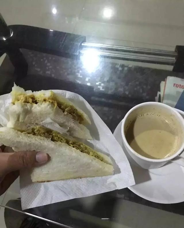 第二天早上。我去前台拿早餐票。前台问我要鸡蛋还是三明治。喝的要咖啡还是茶。我当时选了三明治和咖啡。不一会儿服务员就把早餐端到了我面前。三明治竟然说用那种卫生纸包着的。我当时震惊了。咖啡的杯杯柄上全是油。咖啡的颜色还怪怪的。我实在是下不去嘴。就拿了一瓶房间的矿泉水喝。