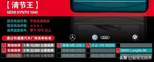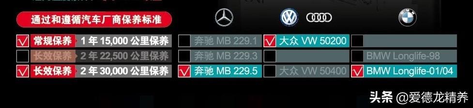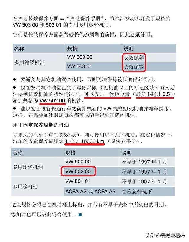 大众奥迪发动机可用于常规保养、1.5万公里不换油的VW 50200认证机油。在3万公里长效保养标准VW 50300面前、属于杂质!
