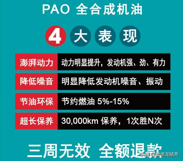 PAO真全合成机油。可以花比现在少一半以上的保养费用、得到比现在高出数倍的结果:保养越好、花钱越少