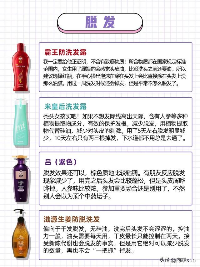 作为一个脱发星人。用过别人说的一堆治疗脱发的洗发水。好多跟风买来就用。我想说你们要先了解一下自己是什么样的发质。再选择洗