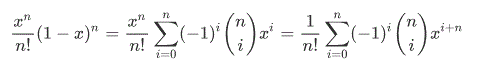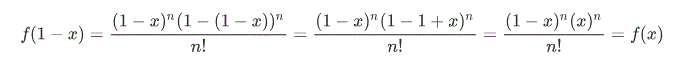 当 0 < x < 1 时。0 < 1 - x < 1。 0 < xⁿ(1 - x)ⁿ < 1。于是 0 < f(x) < 1/n!;