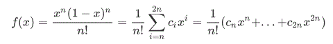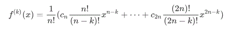 故 f⁽ᵏ⁾(0) = c_k⋅k!/ n! = c_k⋅k⋅⋅⋅(k-n) 是 整数;当 k > 2n 时。