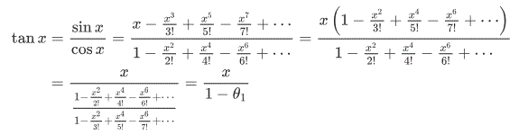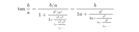 若 x 是有理数。则 x = b/a 。不妨设。b, a 为正整数。且 a > 1。带入 tan x 的连分式。有: