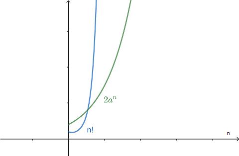 由于。n! 是比 2aⁿ 增长更快的函数。