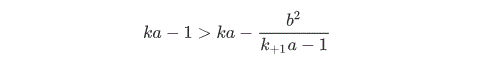 而 k₊₁a > ka 于是 k₊₁a - b² > 1。所以:
