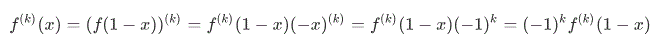 对于所有 k ≥ 0 , f⁽ᵏ⁾(x) 在 x = 0 或 1 时。都是 整数。证明如下: